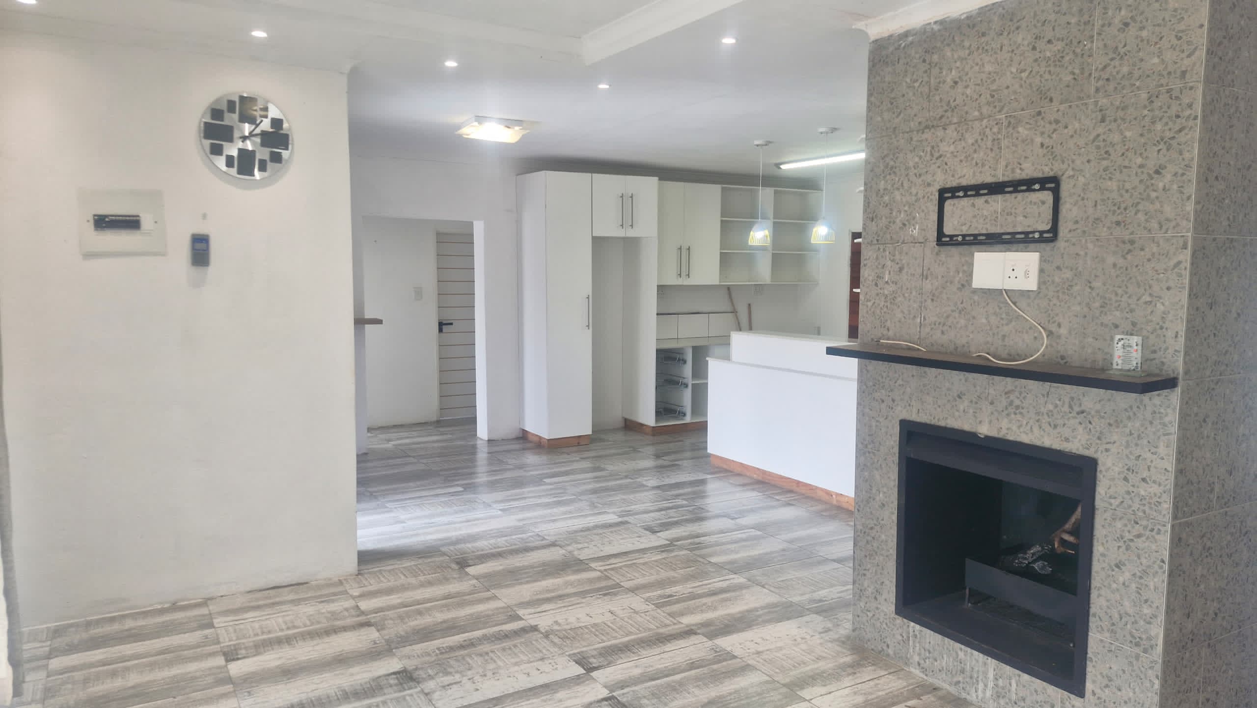 A 3 bedroom, 3 bathroom home is for sale in the gated and highly sought after, Tubungu Estate in Matsapha. The interior is quite spacious, with a modern, tile-clad fireplace and open plan kitchen. Two of the bedrooms are ensuite and there is also a common bathroom.