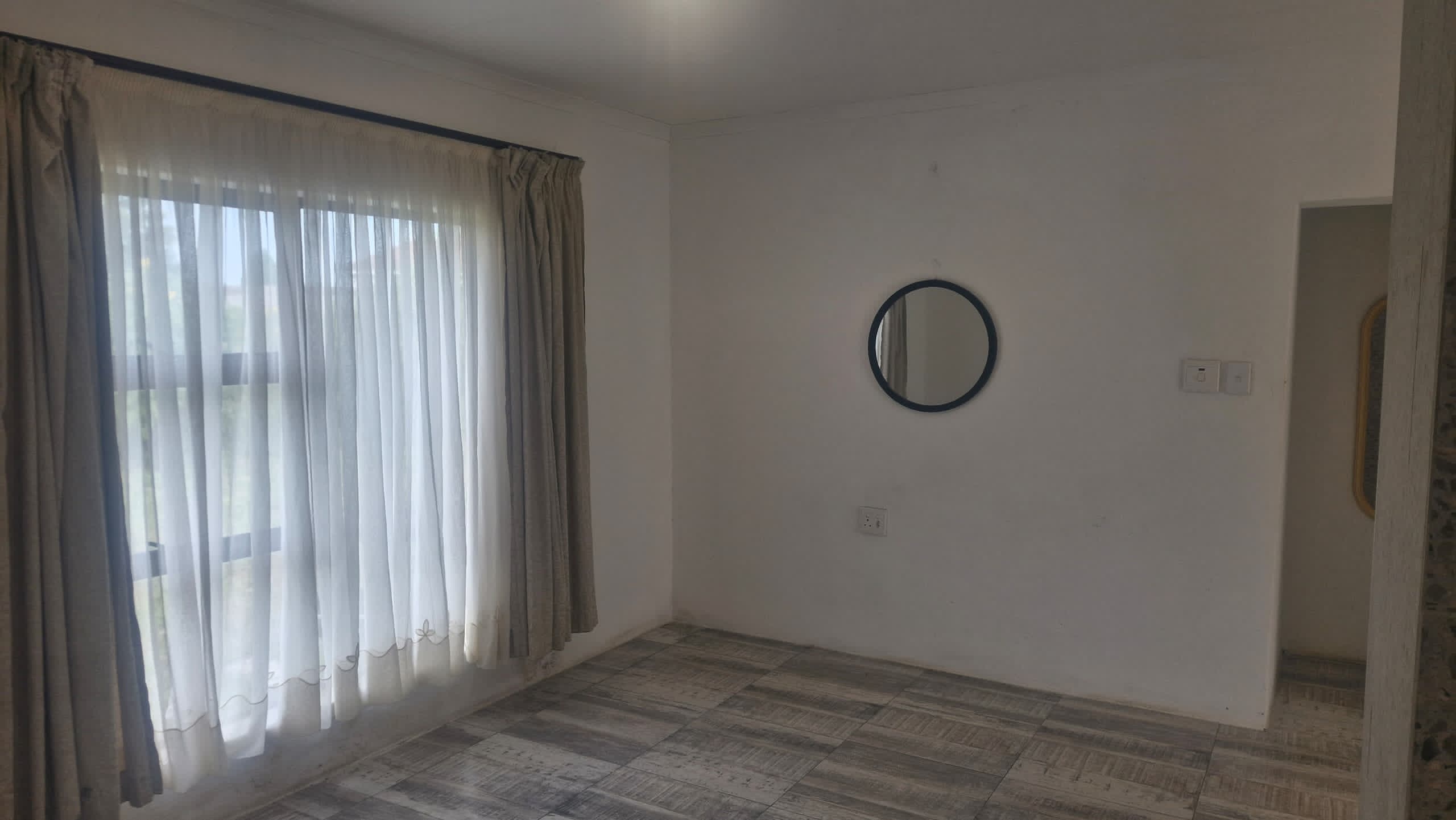 This morden home sits on a sprawling 1655sqm plot, with a lush green lawn. The driveway is paved with concrete and a double car port protects your cars from the elements. The perimeter of the property is wall fenced for added security.